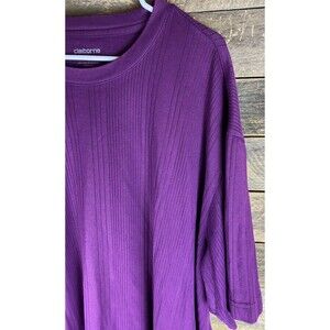 Claiborne Women's Plus Sz 3XLT Purple Ribbed Short Sleeve Stretchy Top