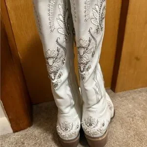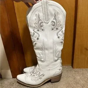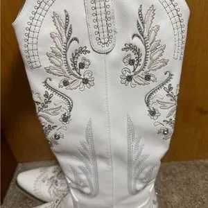 Step out in style with these elegant white embroidered western boots. Perfect for the bride to be if you are doing a Nashville / country inspired bachelorette trip. Or if you just want a cute pair of boots! I wore these for my Nashville bachelorette for 1 night, so they are in like new condition! Size 7 (I am a true US 7.5 / EU 38 for reference)