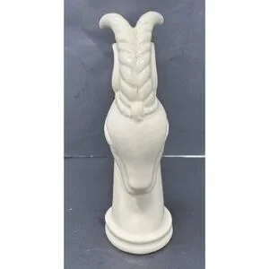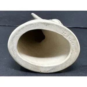 Wonderful Art Deco gazelle head by Princeton China of Trenton, New Jersey. This sleek circa 1940s piece is ivory clay with a glossy clear glaze, and measures 8 3/4” tall, 3 1/4” long, and 2 1/4” wide. Princeton China marked their wares with a foil sticker (long gone) and an incised "P" with numbers following - this is marked "P 158" as best as I can make it out.
