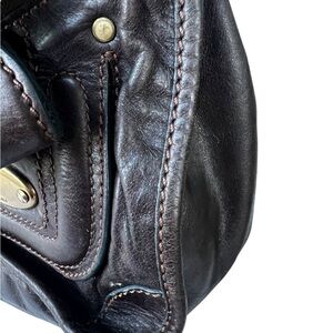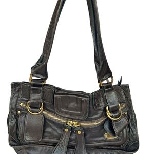 This dark brown color Chloe bay bag is in excellent condition with only minor signs of wear. There is no rips, tears or stains. This bag goes with any outfit and can be used for work or play. Add some class to the office with this bag. It is large enough to hold files, an iPad or small laptop.