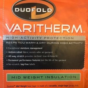 Duofold Varitherm moisture wicking mid-weight insulation thermal pants. Keeps you warm and dry. Antimicrobial. Odor resistant. Black. Men’s 2XL. NWT.
