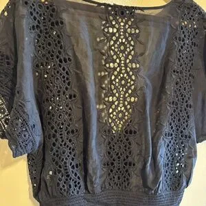 This top is made with lightweight fabric and beautiful details on every inch of it. It is in good condition with no fraying. F