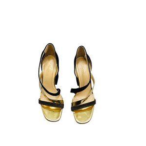 Vince Camuto Imagine Womens Leather Gold Metallic Strappy Block Heels US 7M EU37 New