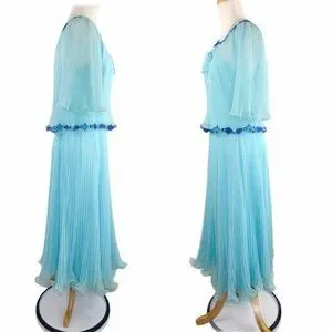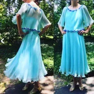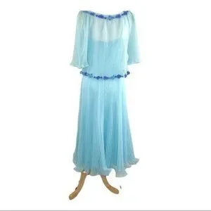 Miss Elliette California 60s Chiffon Dress and Cape VNTG Style 1948B Sky Blue 10
