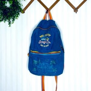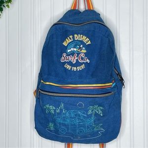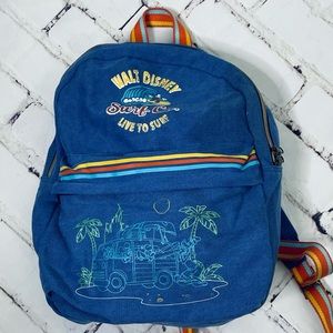 Walt Disney World Mickey & friends Surf Co. denim rainbow strap backpack