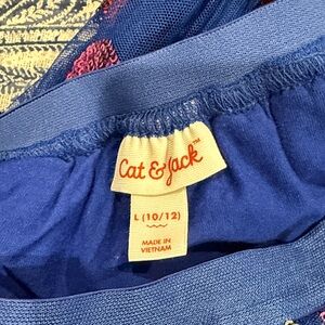 3 layer skirt with sequined hearts . Two outer layers are a mesh fabric but innermost layer is thicker cotton- not see through. Elastic waistband. Size 10/12 L