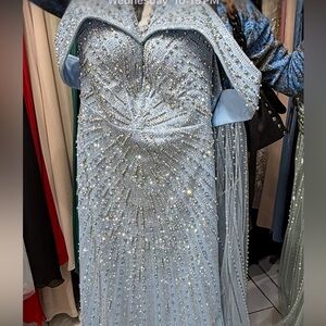 Elegant light Blue Beaded Evening Gown made in Turkey, NOT tarik ediz