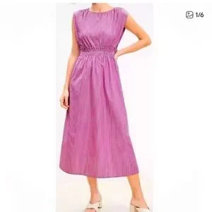 Loft Striped Poplin Midi Dress
