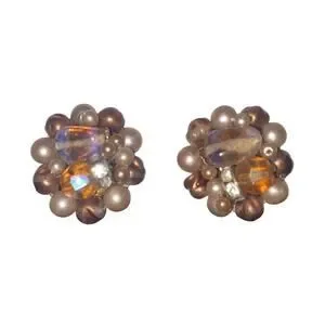 A pair of multi-toned, beaded cluster earrings, which may be vintage bronze and faux pearl.