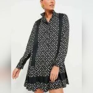 Tuckernuck Black Geo Tate Dress XS Tencel Long Sleeve Drop Waist Mini Flirty New