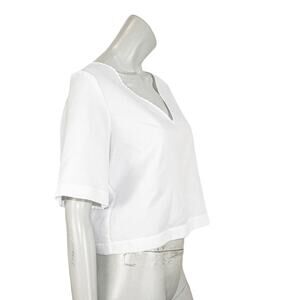 VETTA Women's Cropped V-Neck Blouse Short Sleeve White Size Medium