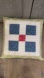 Decorative throw pillow featuring a patchwork design. Blue and red accents on a cream background. Perfect for adding a cozy touch to any room. This pillow handcrafted at Sew Amazing Handcrafts what are the perfect attached to your couch, bedroom, sofa, recliner, bench. Featuring a bear paw “pattern I have designed this out of old-fashioned/antique cotton prints.