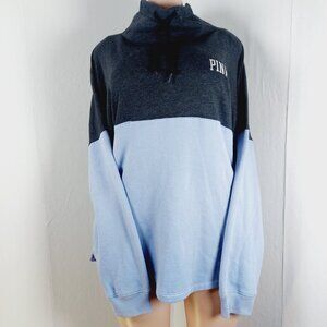 PINK Victoria's Secret Womens Periwinkle Grey Blk Varsity Cowl Neck Sweatshirt M
