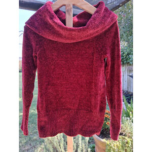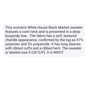 White House Black Market Burgandy Cowl Neck Chenille Sweater Size S New