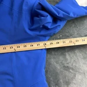 • Key features are: waterproof and insulated shell, front zip pockets, zippered sleeve pocket, adjustable Velcro cuffs, high collar, attached hood, and sleek sporty design