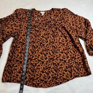 a new day Women's Floral Print Flowy Balloon Sleeve Tie-Front Top Size XS