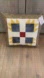 Decorative throw pillow featuring a patchwork design. Blue and red, brown and yellow accents on a cream background. Perfect for adding a cozy touch to any room. This pillow handcrafted at Sew Amazing Handcrafts what are the perfect attached to your couch, bedroom, sofa, recliner, bench. Featuring a bear paw “pattern I have designed this out of old-fashioned/antique cotton prints.