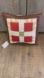 Decorative throw pillow featuring a patchwork design. Brown, tan, green and red accents on a cream background. Perfect for adding a cozy touch to any room. This pillow handcrafted at Sew Amazing Handcrafts what are the perfect attached to your couch, bedroom, sofa, recliner, bench. Featuring a bear paw “pattern I have designed this out of old-fashioned/antique cotton prints.