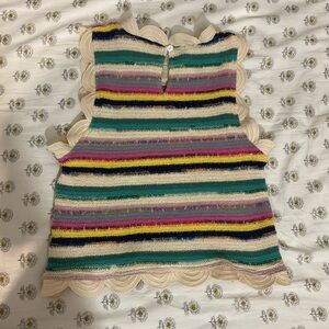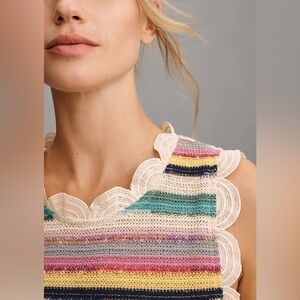 Anthropologie Blue Tassel Sleeveless Crochet Scallop-Trim Top