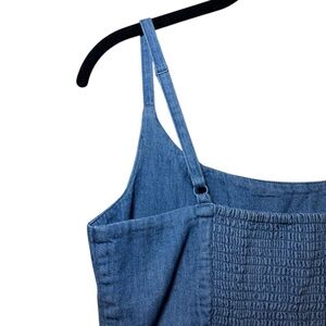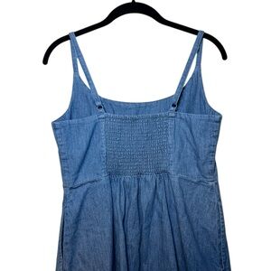 Old Navy Woman’s Sun Dress Denim with Pockets Size Medium. Features include thin straps, full coverage chest area with pleated detail, smocked back for comfort/fit, adjustable straps, hidden side pockets. Good worn condition, no notable flaws. Smoke free home.