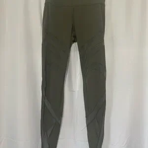 Olive green Lululemon high-waisted leggings with mesh details #activewear