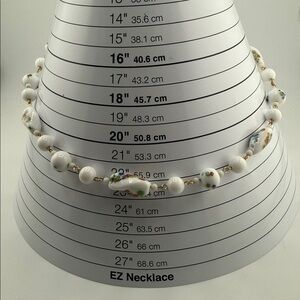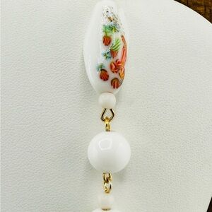 Vintage floral painted milk glass beaded necklaces are a popular type of costume jewelry. These necklaces are often made with white or milk glass beads that have hand-painted floral designs on them. The beads are strung together with other smaller spacer beads and a gold or silver-toned chain and clasp.