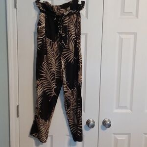 H&M Black and Cream Leaf Print Pants