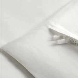 Washed once but not used yet. Only selling because I received the wrong size. Luxury linen blend comes with pillow cases and duvet cover. Originally over 250