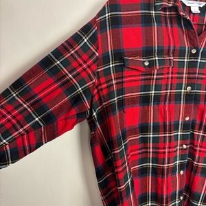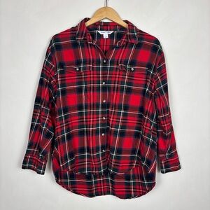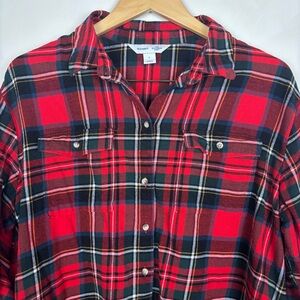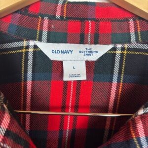 Old Navy Women’s the Boyfriend Red Plaid Flannel L Cabincore Holiday