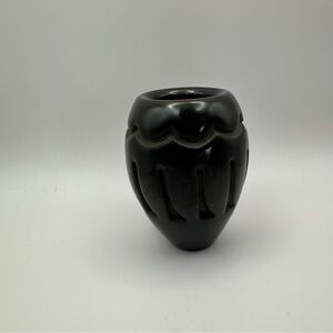 Santa Clara Pueblo Blackware Pottery by Elaine Salazar โ 3.5" Carved Vase