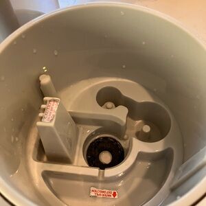 Works great. I cleaned it thoroughly with vinegar but there is some discoloration inside the water tank. Objecto sells new replacement water tanks, so that could be replaced, if desired.