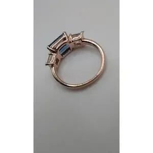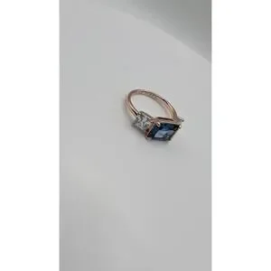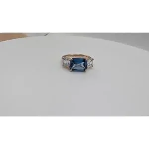 Elegant ring featuring a large rectangular blue gemstone centerpiece.