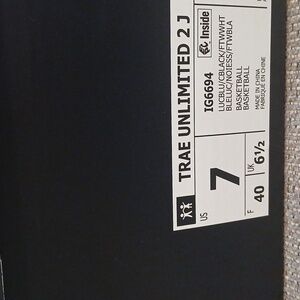 New in box! Adidas Trae Unlimited 2 J Basketball Athletic Sneakers. Royal blue with black and white accents. Size 7.