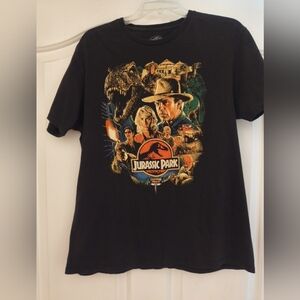Jurassic Park size large men's black graphic tee shirt with colorful graphics