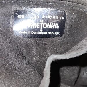 Classic black suede boots by Minnetonka. Stylish and comfortable for any occasion.