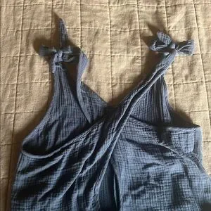 Elevate your wardrobe with this chic gray flare jumpsuit. Perfect for any occasion, this piece offers both comfort and style. It has some piling/pulled strings in places but otherwise good condition. Very lightweight gauze organic material. Crisscross back. Adjustable tie straps. Pockets!!