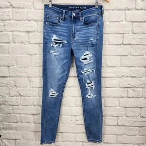 American Eagle Distressed High Rise Jegging Medium Wash Denim Jeans Sz 6R