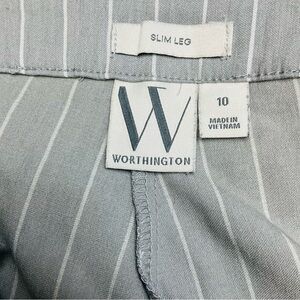 WORTHINGTON Slim Leg Gray White Pin Striped Ankle Dress Pants Woman 10