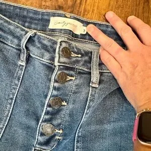 Carly Jean Los Angeles Hendrix Wide Leg Jean in size 3. This medium wash pair of jeans offers their signature comfort stretch with buttons up the front and a raw hem at the leg. The denim is so soft and comfortable. They no longer fit me, but my loss if your gain.