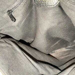 - Inside outer compartment and inside zip compartment. Outside Slide Compartment located on the back also. See pictures.