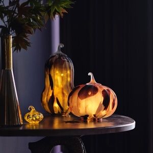 Place a tealight candle or twinkly lights into this glass gourd for a touch of autumnal charm to home decor.