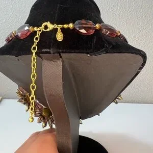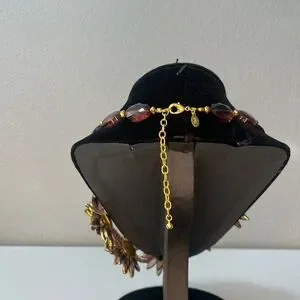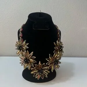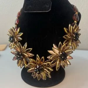 Vintage Joan Rivers Cluster Floral Bib Statement Necklaces in a cognac-colored glass flower on a gold-toned base. Ideal for elevating any ensemble.