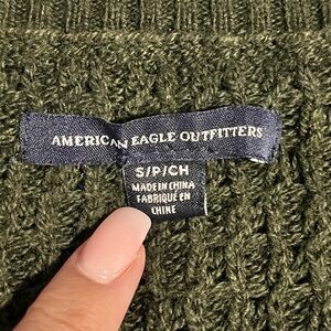 American Eagle Outfitters Green V-Neck Sweater Y2K Textured Knit Small