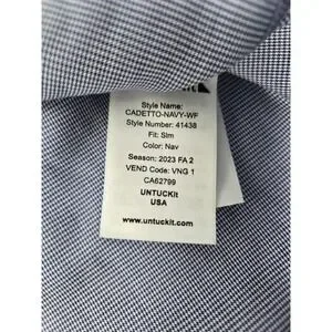 The Untuckit Cadetto WF Shirt is a men's blue button-down dress shirt designed for a comfortable and stylish look. Made from wrinkle-resistant cotton chambray fabric, this shirt features a collared neckline, long sleeves, and button accents. It is suitable for various occasions including travel, parties, casual wear, and business meetings. The shirt is in size M with a regular fit and is machine washable for easy care. Perfect for the summer, fall, and spring seasons, this shirt is a versatile and colorful addition to any man's wardrobe.