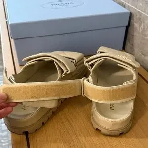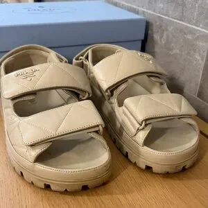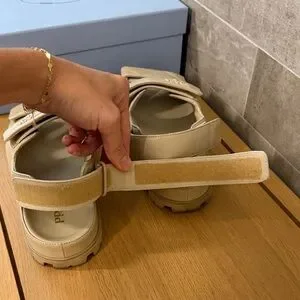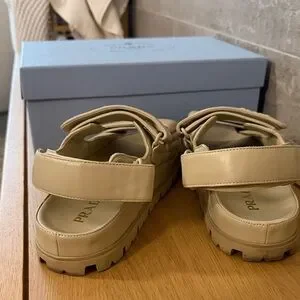 Chic Prada sandals in light tan. Ideal for everyday style, really comfy.
