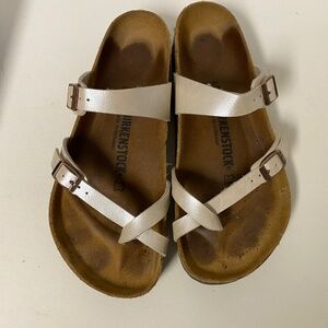 Birkenstock Size 40 Mayari Women Toe Loop Sandal Pearl White With Box