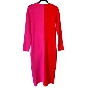 This dress features a cheerful color block design with red and deep pink tones, perfect for adding a pop of color to your wardrobe.