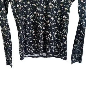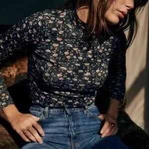 Sezane Felix Navy Blue Miranda Floral Mock Neck Long Sleeve Tee NWT Medium