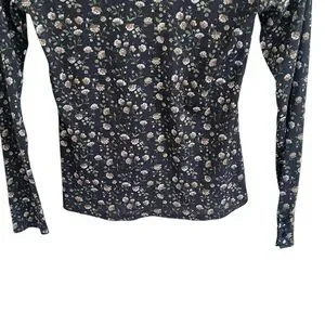 New with tags! Navy blue, Felix floral print, 100% cotton, long-sleeved t-shirt with slightly high neck line. Has button tabs at ends of sleeve. In great condition.