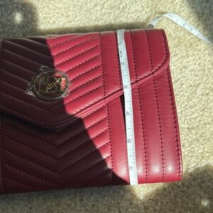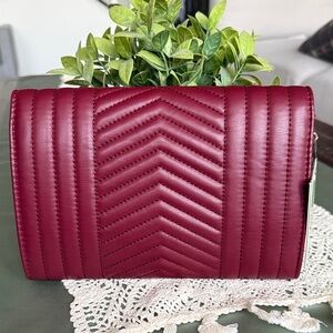 Add a touch of elegance to your ensemble with this burgundy quilted clutch. Perfect for any occasion, its timeless design complements your style effortlessly.